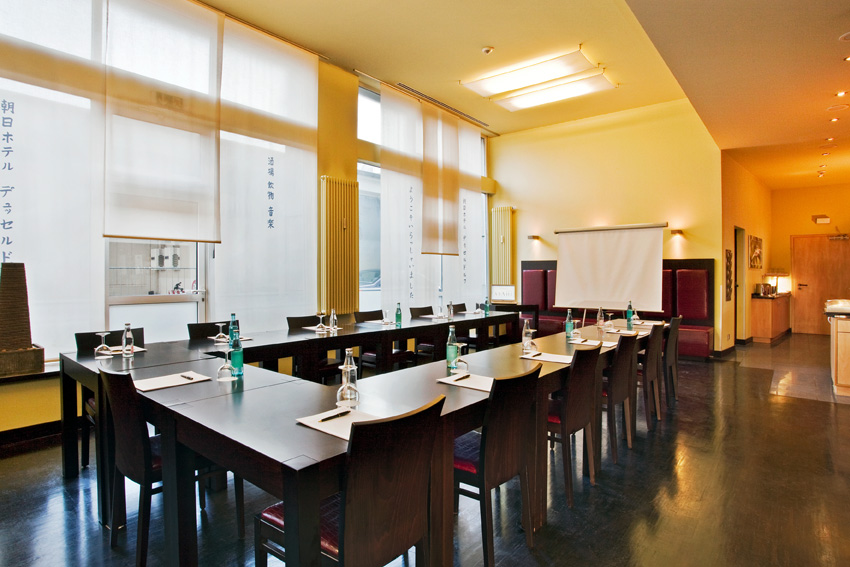 Unser klimatisierter und mit moderner Technik ausgestatteter Tagungsraum bietet mit ca. 22qm Größe bequem Platz für 10 Personen.